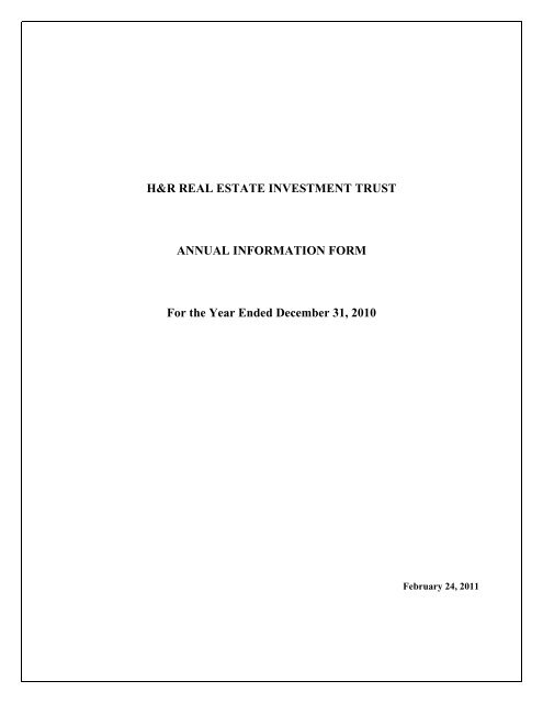 H Amp R Real Estate Investment Trust Canadian Stocks